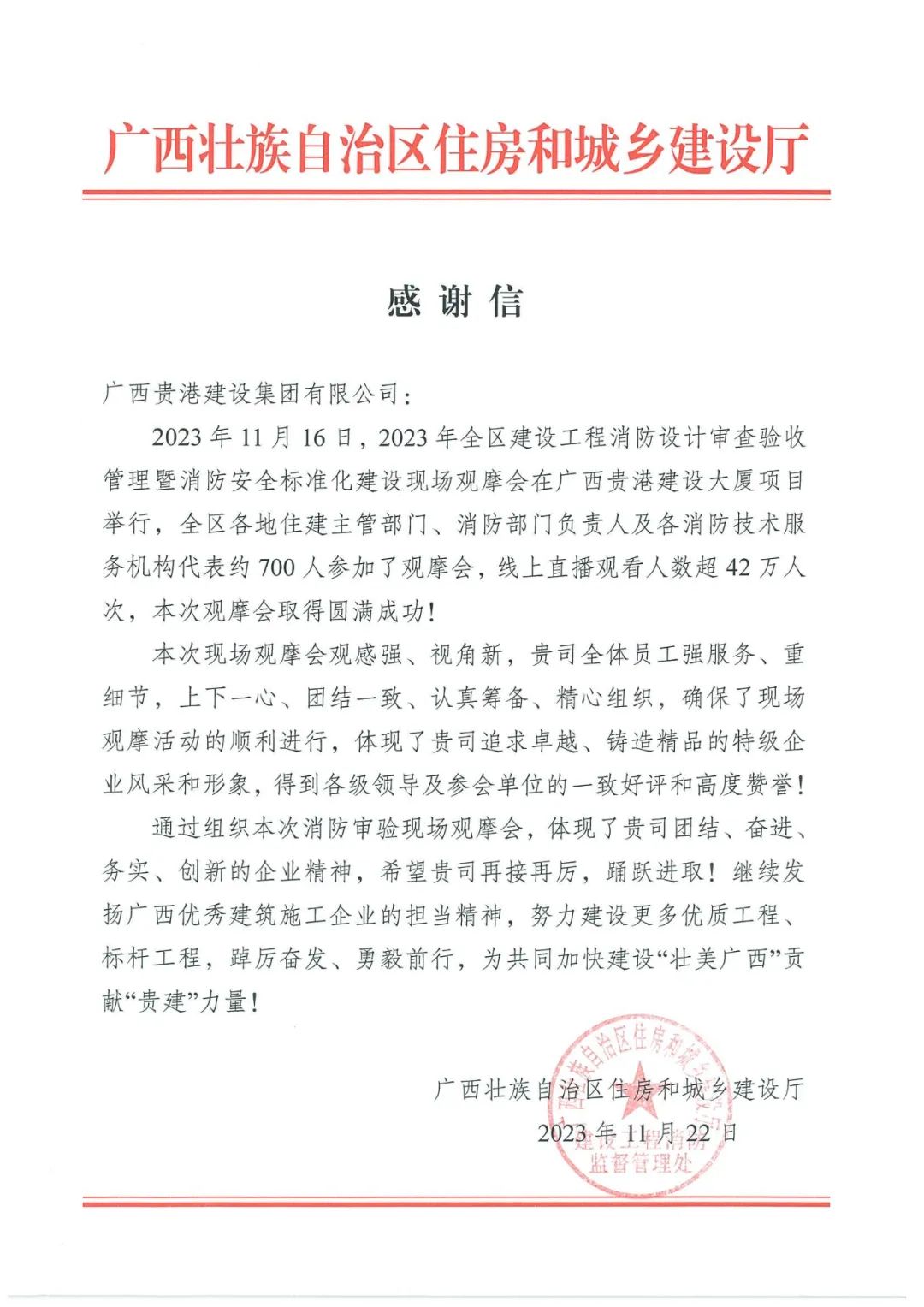 廣西貴港建設集團有限公司(簡稱貴建集團)創建于1955年4月,是貴港市唯一一家獲批建筑工程施工總承包特級資質的企業,以建筑工程施工和市政公用工程施工、房地產開發為核心業務,是集投資、建造、運營一體化的國有參股大型建筑企業集團,是貴港市納稅大戶、貴港市建筑施工行業龍頭企業,多次榮獲“全國優秀施工企業”“廣西百強企業”“廣西守合同重信用企業”“廣西民營納稅10強企業”等企業榮譽。 貴建集團注冊資本3.62億元,在區內外設立13家分支機構,同時擁有21家全資、控股、參股子公司。承建工程廣泛覆蓋區內多個地市及廣東、貴州、云南、安徽、海南等區外市場。先后承(參)建了南寧市大板一區危舊房改造、玉林市育輝高中、柳州市工人醫院總院、貴港市農墾大廈、桂平市軍民兩用機場安置區等一大批地標和重點工程項目,斬獲中國建筑工程魯班獎、國家優質工程獎等國家級工程獎10項、省級工程獎179項和市級工程獎183項…… [了解詳情]